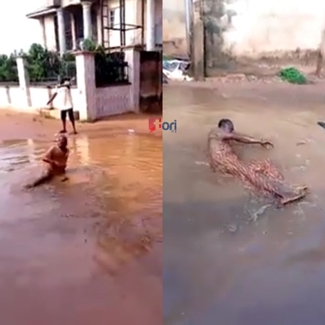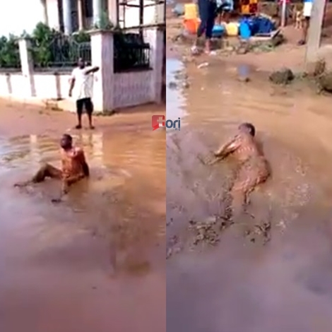 A video which emerged online and is already going viral on social media show a Nigerian soldier forcing a man so roll inside a dirty water.
