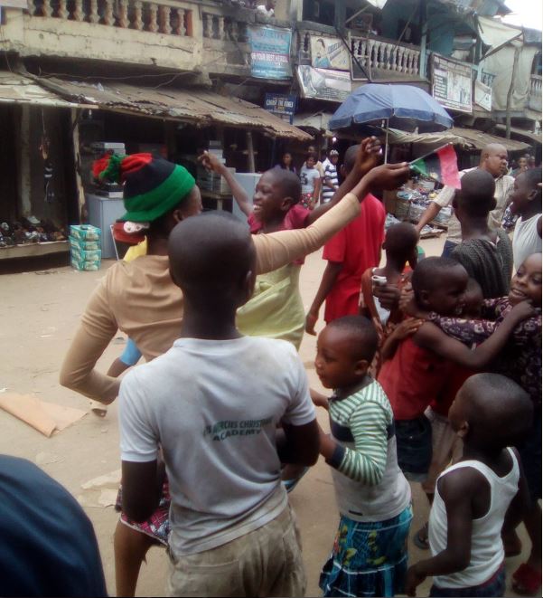 Residents of Aba, Abia state have trooped out in jubilation after the leader of the Indigenous People of Biafra (IPOB),