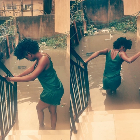 She captioned the photos; "Two hours rain in yaba dis morning."
