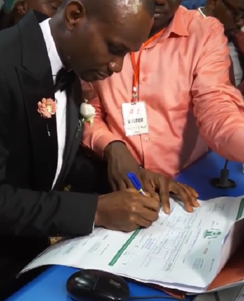 The wedding took place during the 1pm Midday Oasis program hosted by Dotun and Taymib. The couple are now headed for their reception. Family of the bride and groom witnessed the ceremony all overjoyed.